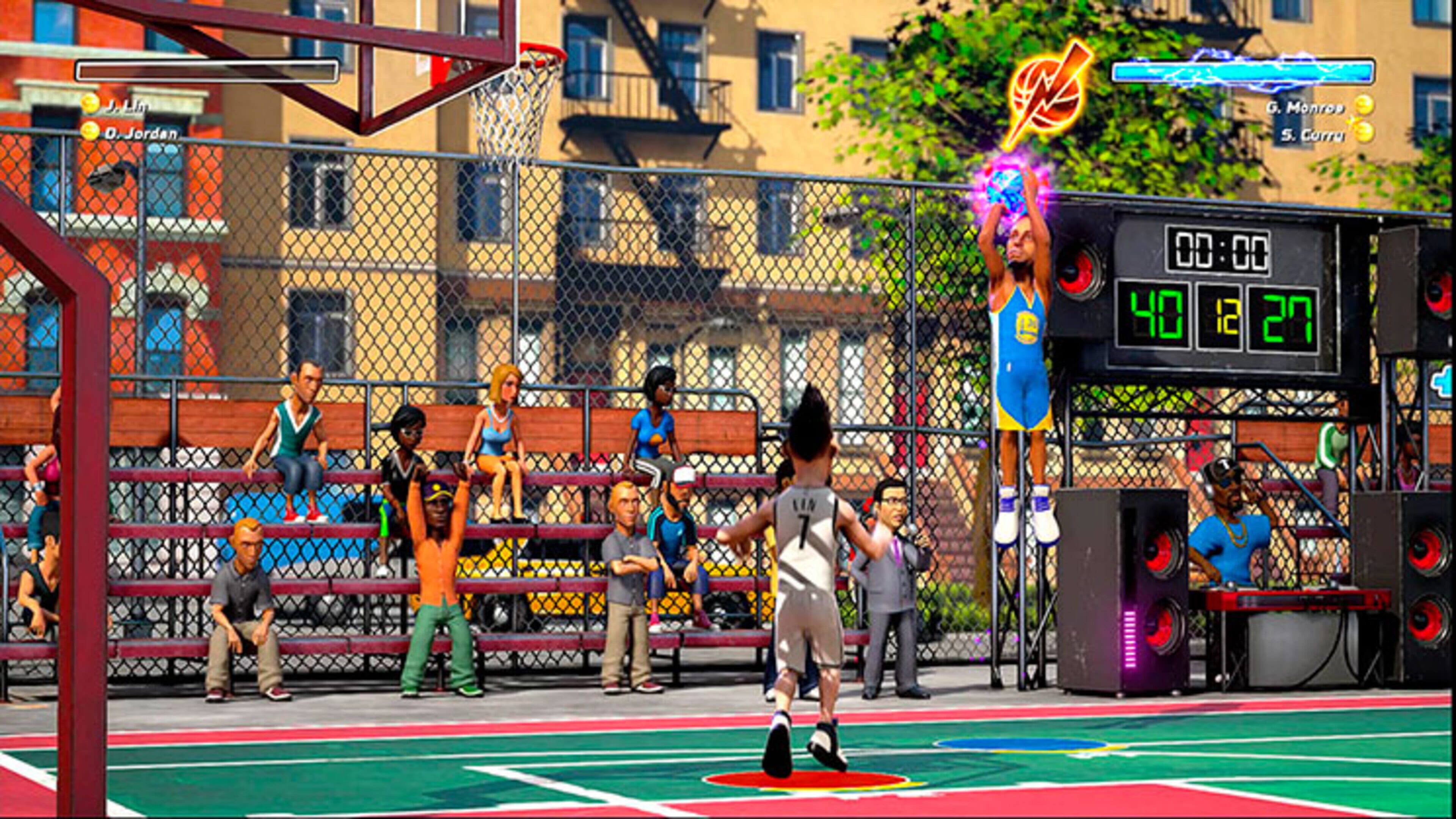 “Classic NBA arcade action is back! Take your “A” game to the playground and beat the best in high-flying 2-on-2 basketball action. Practice your skills offline, play with up to three others, or take your talents online to posterize your opponents with acrobatic jams and ridiculous displays of skill.”