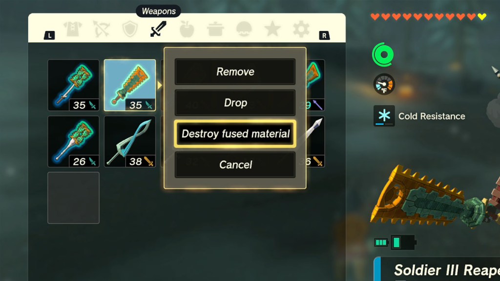 Zelda: Tears of the Kingdom: How to Unfuse Gear