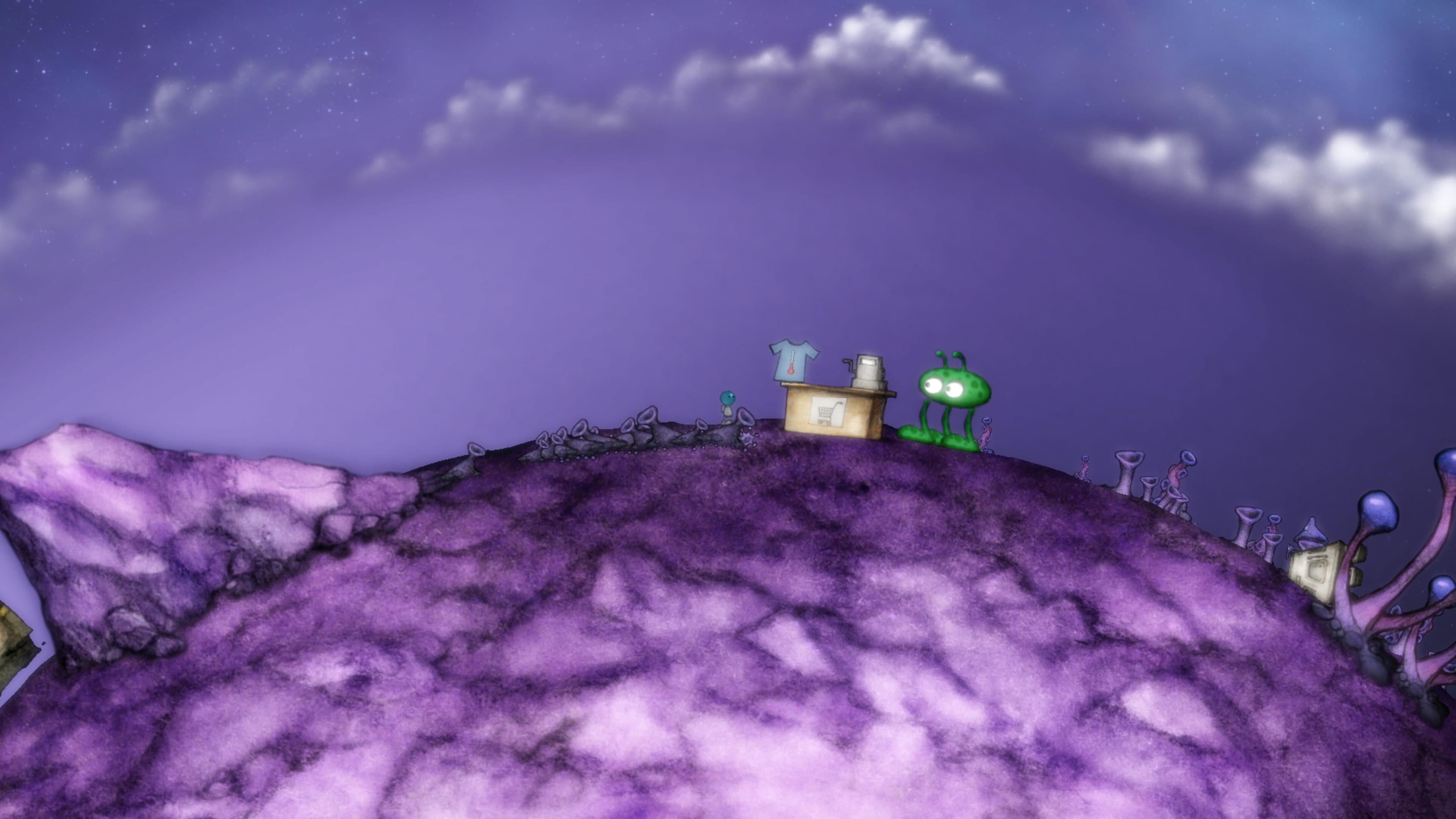 A space-flight game using platforming and physics for the PlayStation 4. Embark on an odyssey through the galaxy where physics-based space-flight and platforming action blend seamlessly together. Explore a colorful universe filled with amazing discoveries, alien races, and fashionable hats. Unfortunately, your only company is ZING, a navigation computer with no memory of your whereabouts and a slightly faulty social circuit.