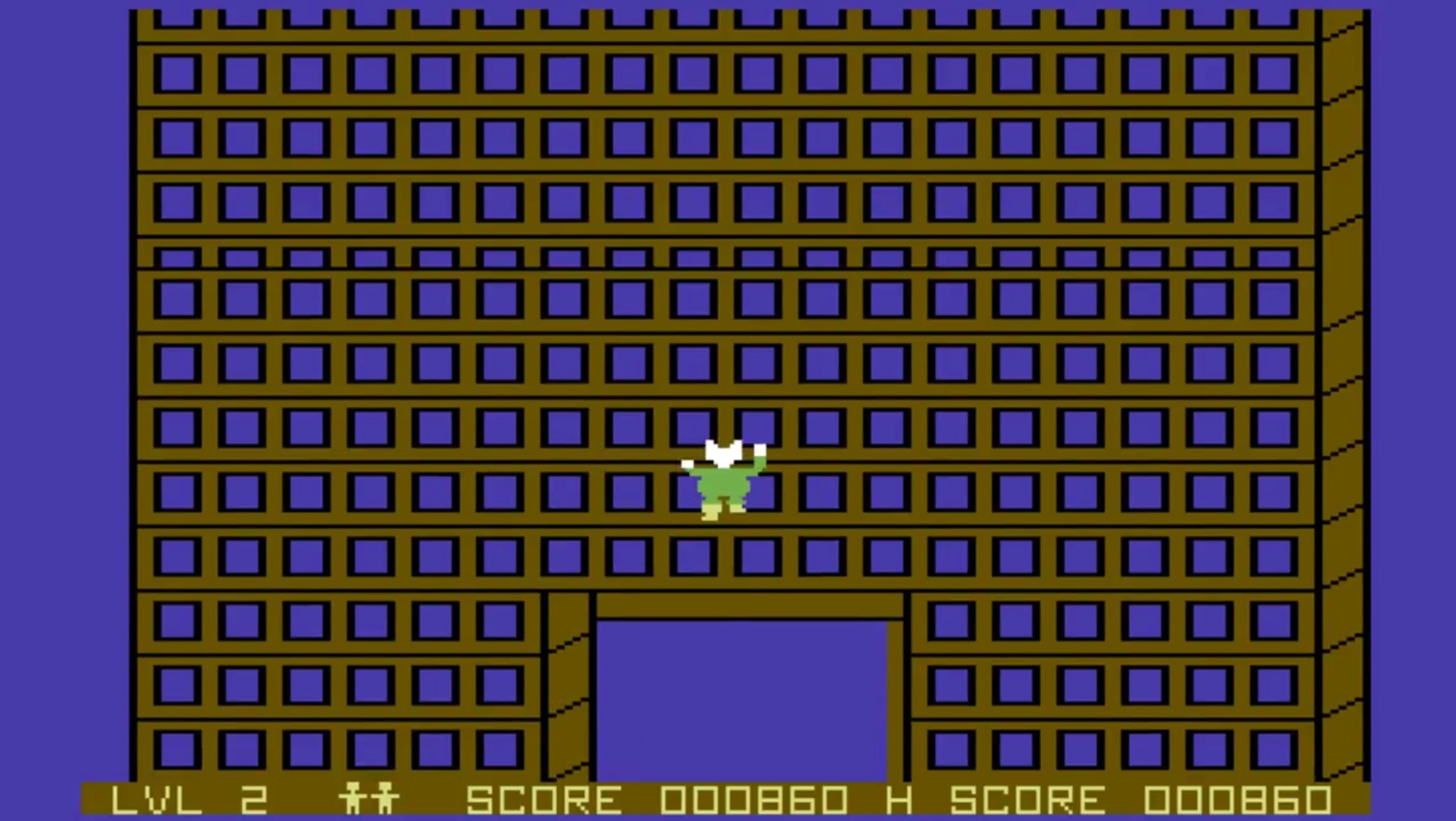 The player controls Harry the Ape who is attempting to climb a 150 floor tall office tower. The player can move up, left, and right, as the building scrolls vertically. The player must avoid closed windows, as they offer no handhold, and will cause your ape to fall. As the player ascends, they must avoid a zookeeper on a scaffold, falling bowling balls, earthquakes, and helicopters dropping nets. Occasionally a balloon will float up the left side of the building, and the player can hitch a ride on these to climb faster. The left side of the screen has a progress bar that shows how far the player has climbed the building. The player has one life to climb the building, and if they fall, they must restart.