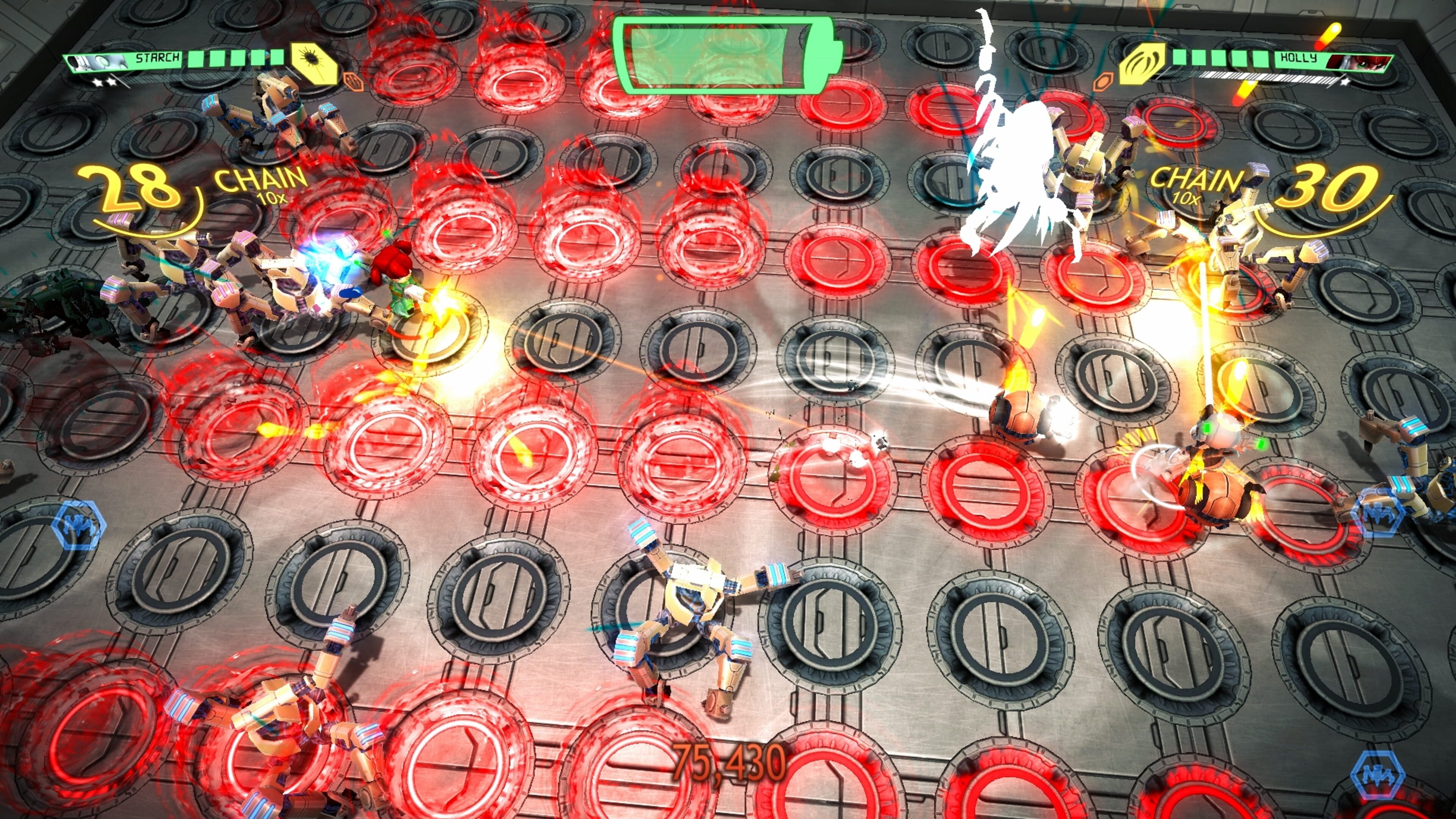 “Assault Android Cactus is a manic twin stick arena shooter for the PC with screens full of enemies, buckets of bullets and high scoring combo chains! Take on the role of Cactus, an enthusiastic police android, who responds to a stranded space freighter only to discover it under siege by its malfunctioning robot workers. Cut off from the outside and in over her head, Cactus and the androids she recruits along the way battle through the crippled Genki Star to reach the brain of the ship and put things right before it’s too late.”