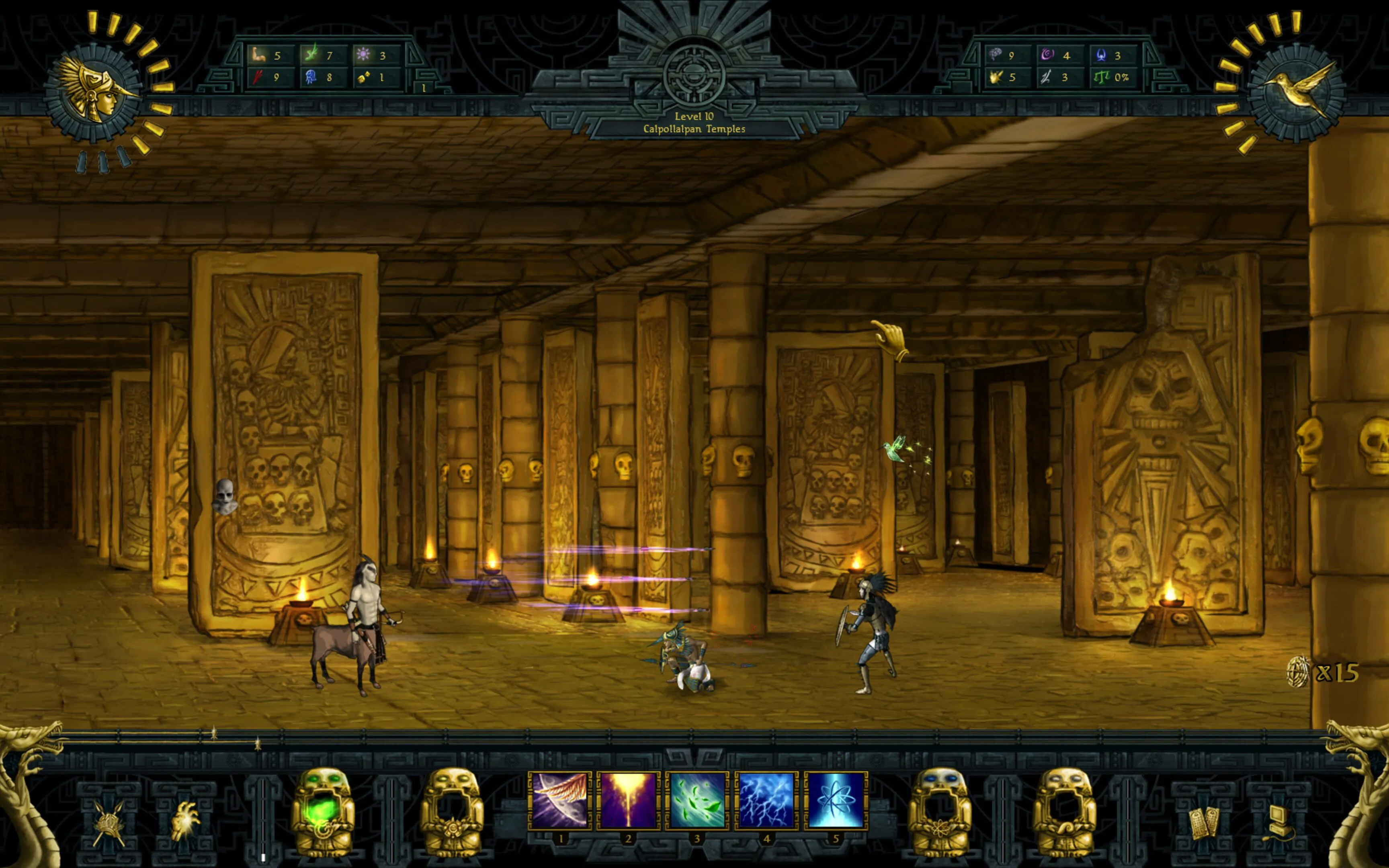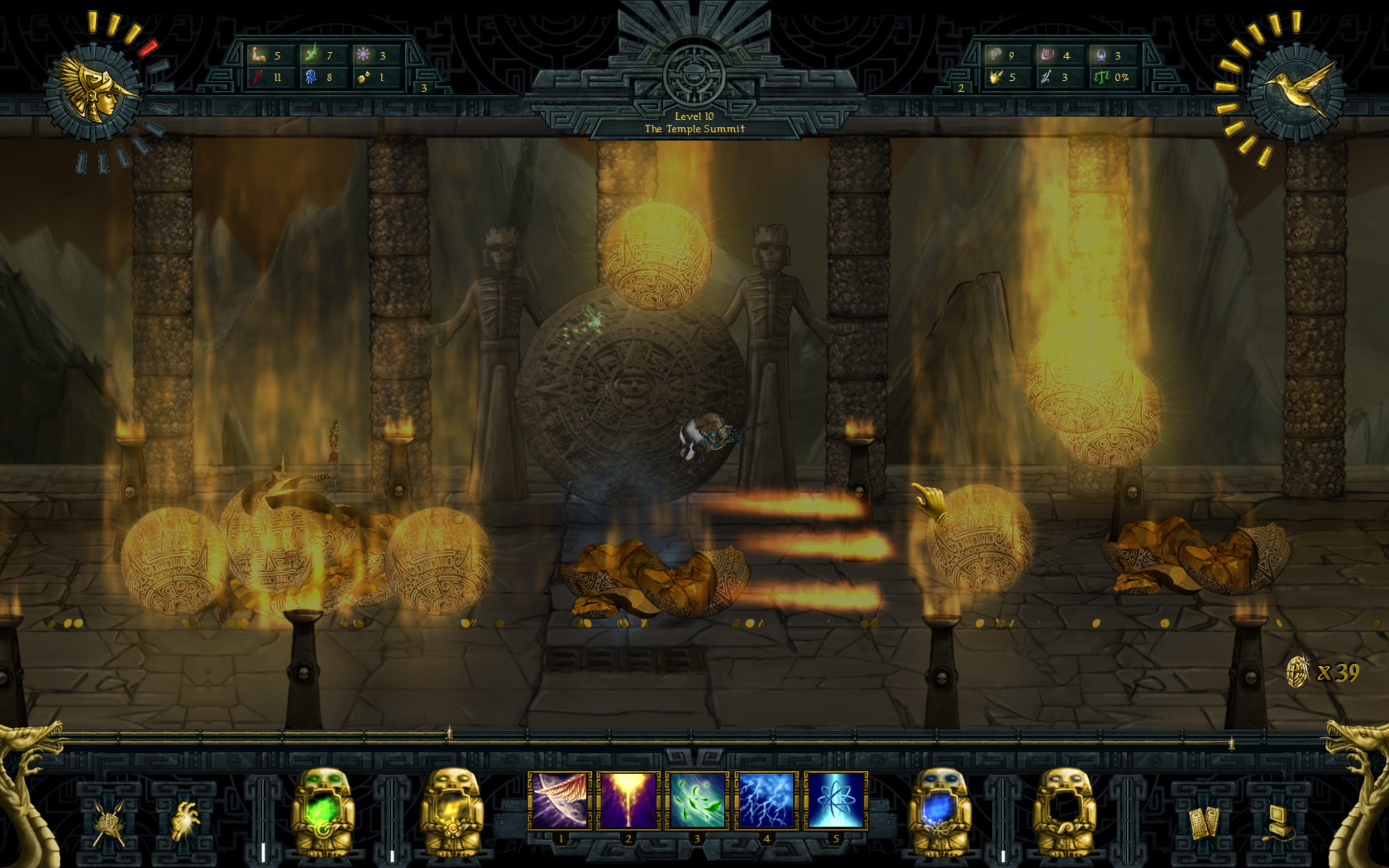 Inspired by Aztec legend, this action/rpg side-scroller will casts you into the middle of a war between the Gods and Mankind. As Huitzilo, heir of the Sun God, skilled in both the arts of combat and magic, only you can save your people from the wrath of the Aztec Gods by reuniting the seven phonograms. Accompanied by your faithful companion Ayopha – trapped in the form of a hummingbird by a magical curse – you will overcome the obstacles in you path through a combination of fighting prowess and spiritual magic.