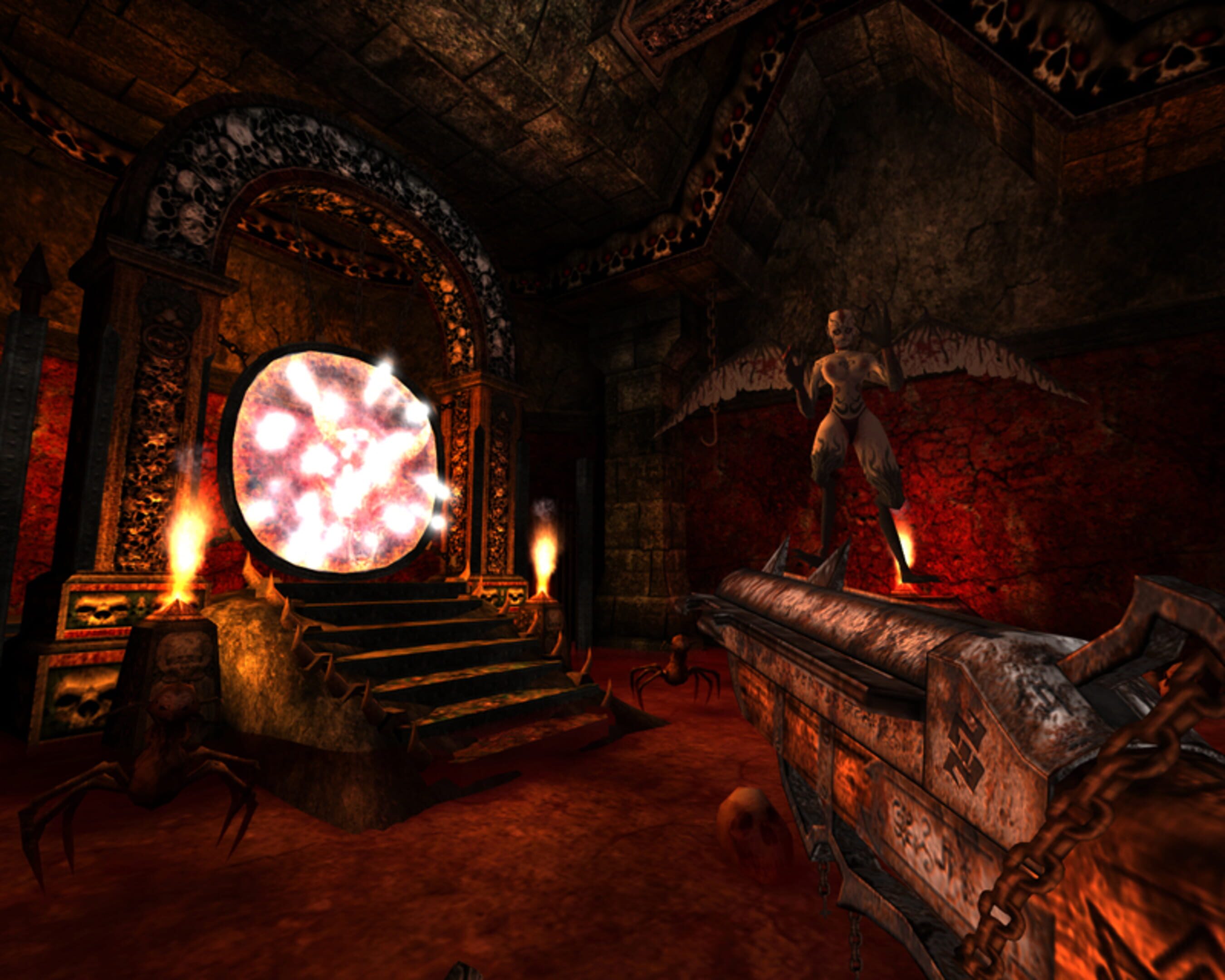 Dark Salvation is about a dead woman named Talia who becomes possessed with an object called the Spirit Crystal. Her parents released the Lucafix demon through one of their cult meetings and she has been pulled into the Underworld to purge it of evil. Experience fast paced, old school FPS action at its scariest. Face multiple monsters within dozens of indoor, outdoor and underground levels. Wield a deadly arsenal of weaponry in which Talia can cast magic spells from each weapon.