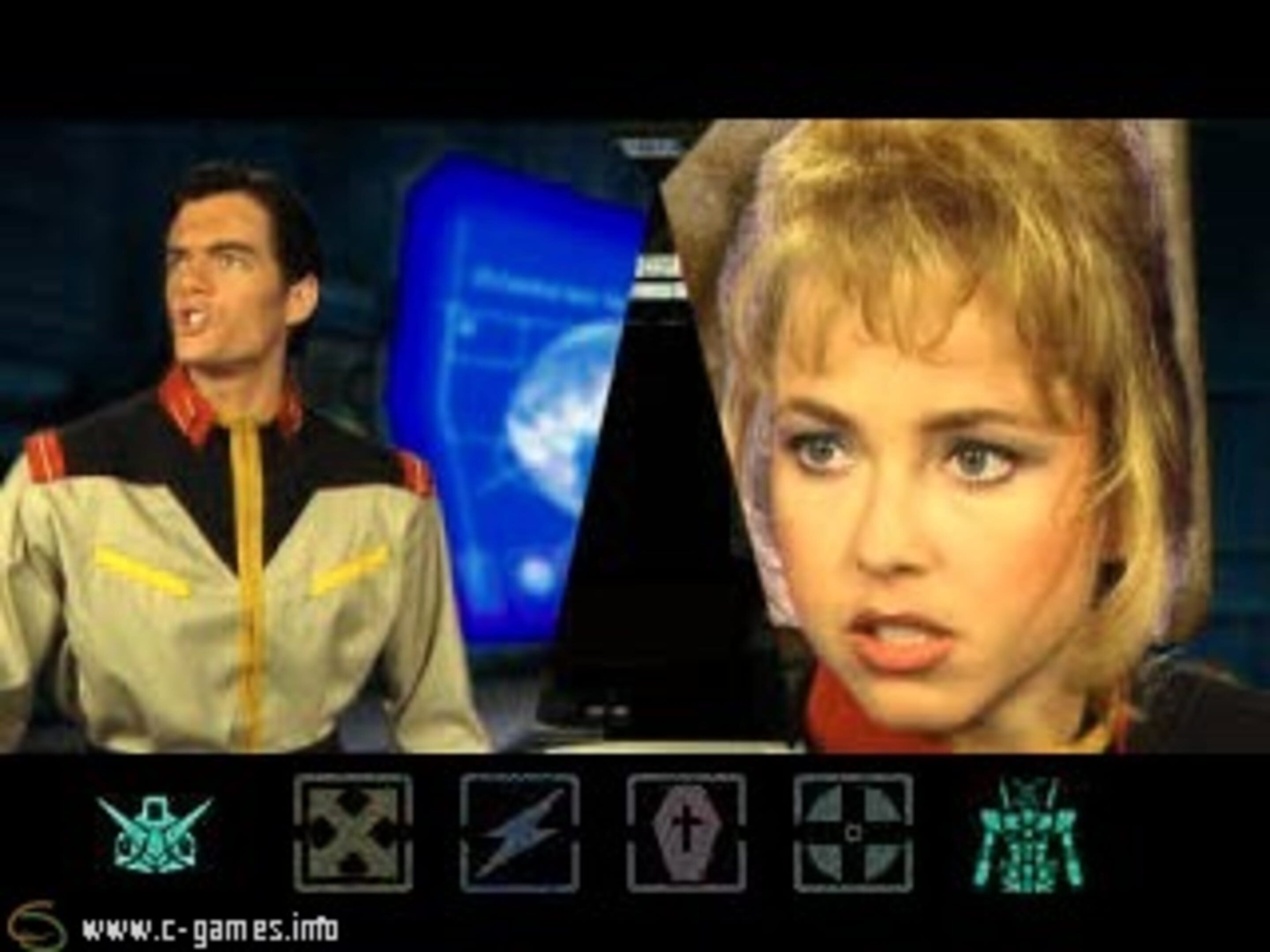 Gundam 0079: The War for Earth is a video game developed for PC, Macintosh and the Bandai Pippin in 1996 and on Sony PlayStation in 1997. The game has the unique distinction of being the only official and commercially released Gundam video game developed by a United States game developer. The War for Earth was developed by the 1990s game developer Presto Studios, a company whose most famous work was the Journeyman Project series of adventure games as well as co-developing Myst III: Exile. During the period in which this game was released, the interactive movie genre which had begun in 1982 was beginning to subside as PC and console games with realtime rendered 3D were overtaking the genre. While it was the only game produced by Presto Studios in this format, the use of live-action footage featuring real actors combined with computer generated backgrounds and effects, as well as the use of entirely pre-rendered computer graphics was common among the majority of the studio’s games. For the Japanese release, the game’s voiceovers were dubbed in Japanese featuring the original cast reprising the voices of their characters, with minimal attempts at lip syncing.