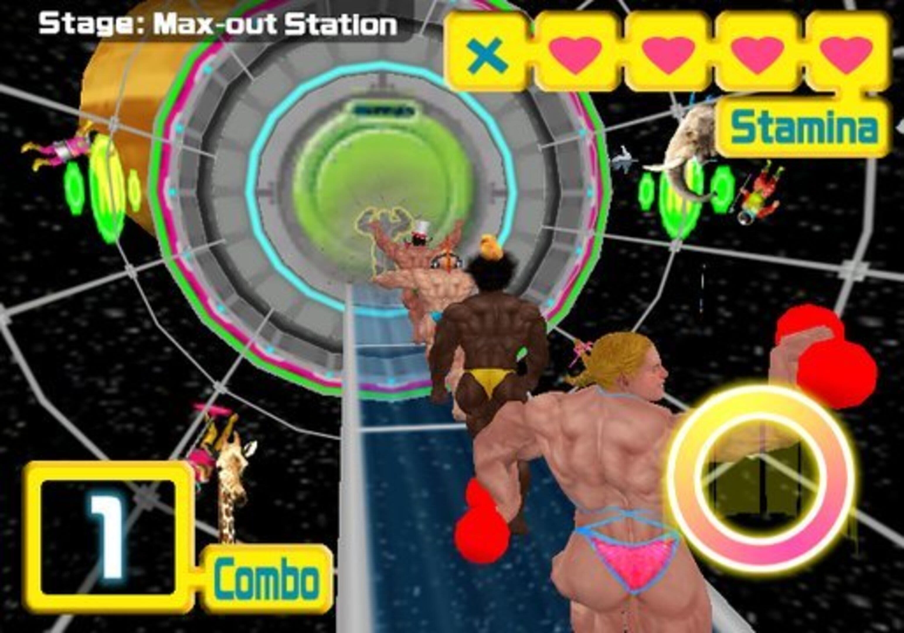 Muscle March is a quirky Japanese action game stuffed full of macho bodybuilders. The all mighty protein powder has been stolen, so it’s up to Tony and his muscle-bound crew to catch the thieves. Choose from a variety of perfectly molded superstars and bring these terrible villains to justice. As the thieves attempt escape, they will smash through walls while making a variety of poses. You must match these poses to fit through the holes and catch up to the thieves. The protein powder will be yours again! Flex your muscles by yourself or with up to three friends in turn-based macho excitement. Posing for a few minutes not enough? Enjoy Endless Rush mode until your muscles bulge and explode! Muscle March will also be the first WiiWare title to offer a polar bear in tight swimwear!