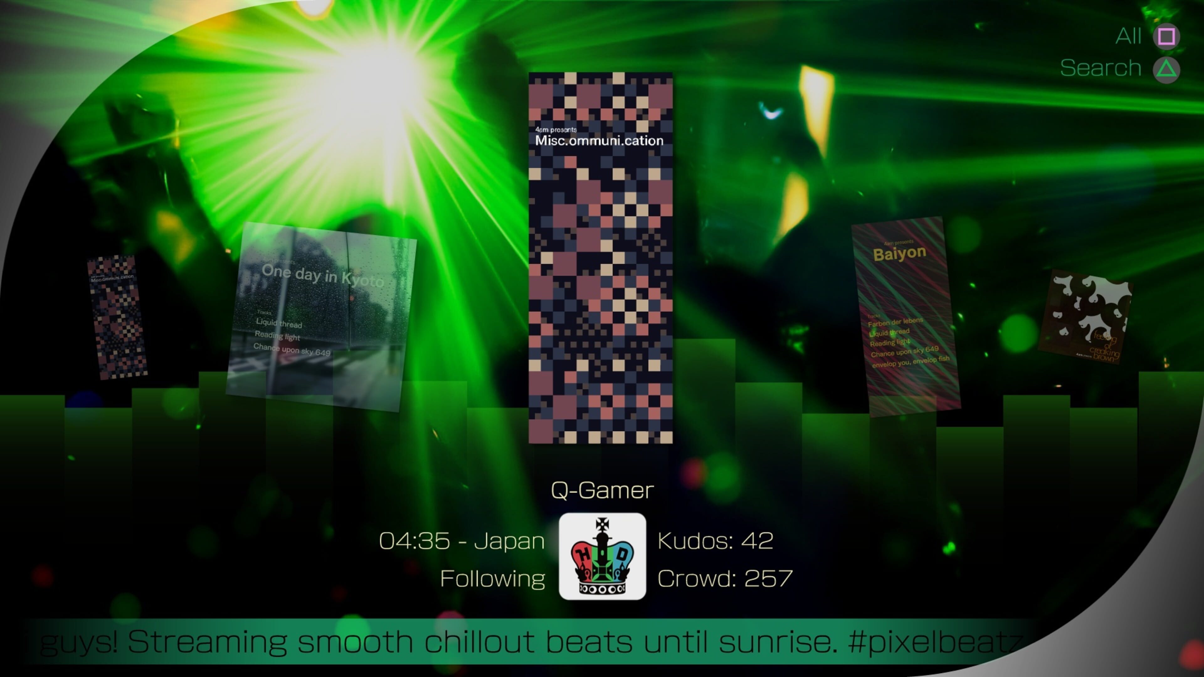 From the crazy, ambient, mellow world which only exists within the mind of renowned artist and musician Baiyon, PixelJunk 4am reflects a huge departure from previous PixelJunk titles by putting the power of creation directly into your fingertips. Mix tracks, experiment with audio effects, and stream live to your friends over the PlayStationNetwork by using 4am’s unique Virtual Audio Canvas to control your composition with the PlayStationMove’s full range of motion. PixelJunk 4am, Q-Games’ first Move title, gives you the power to make breathtaking music and visuals and perform live to the world. This is the PlayStation Move killer app you’ve been waiting for. Key Features -Mix and create your own music with the PlayStationMove. -“Paint” with sound in 3D space by pulling new tracks from the surrounding audio palette. -Broadcast your music LIVE across PSN worldwide -Download the Free Viewer to tune in to anybody’s performance -Gather fans and earn trophies with Twitter & Facebook support. -Create live mixes in simultaneous two player sessions. -Use 4am as a stand-alone visualizer for your own music