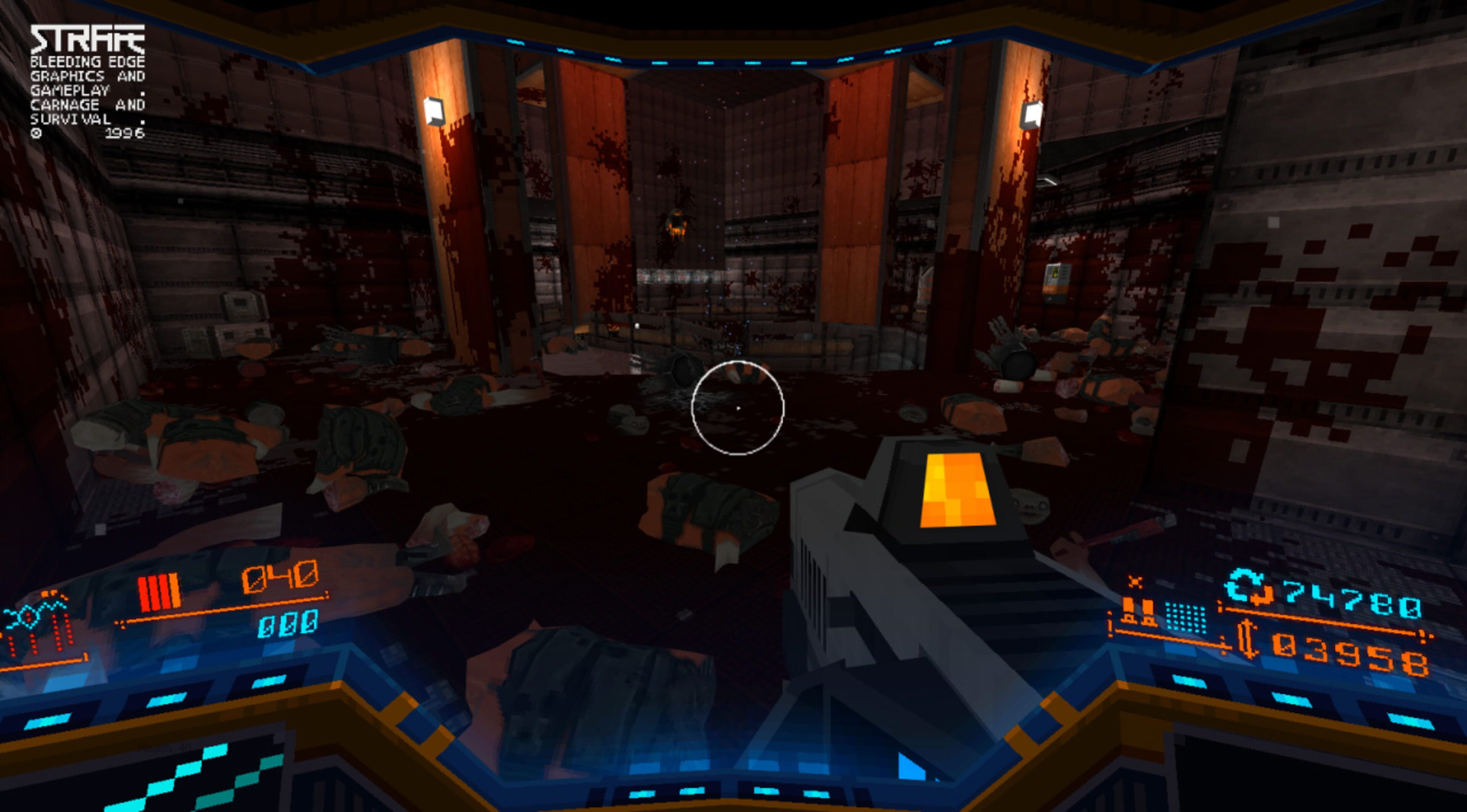 Strafe is a singleplayer 3D action experience where the player can pick up a gun and shoot hordes of things in the face. The developers have created technology that changes the levels every time you play for endless replayability. There are billions of experiences to be had with crazy secrets to find! We give you the levels, you paint them red.