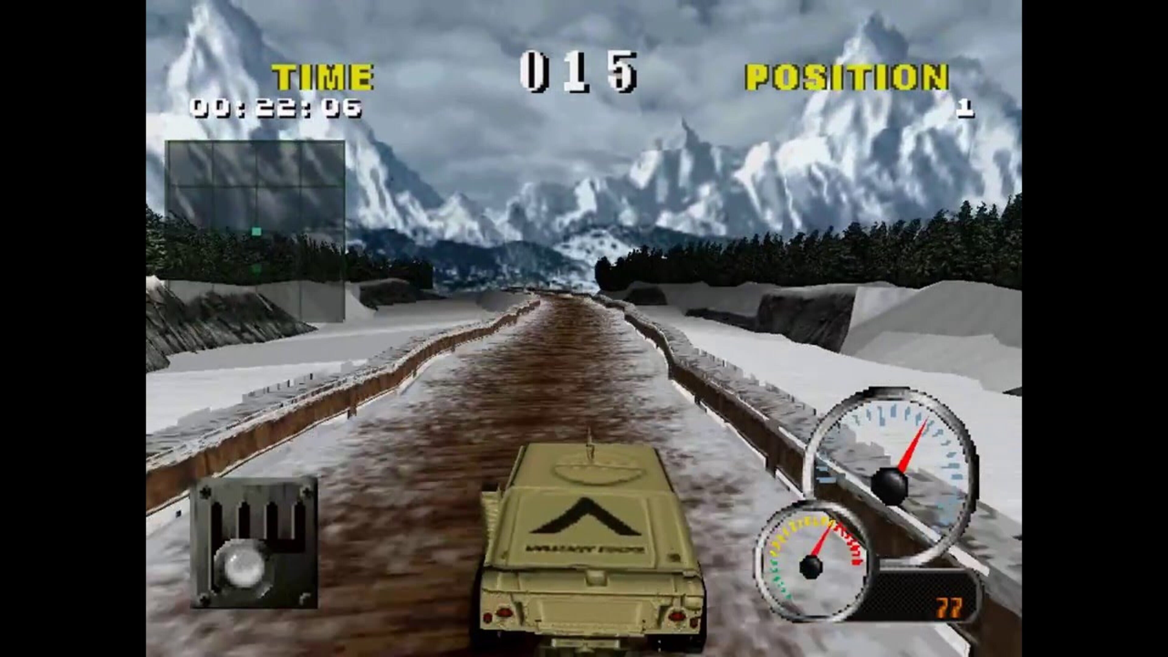 Test Drive Off-Road 2 follows the path set by 1997’s Test Drive: Off-Road as you drive across twelve courses (based on six locales: Morocco, Hawaii, Mojave, Santa Cruz, Switzerland and Wales) in your quest to win races on the World Tour. This time twenty vehicles are available to choose from, but before you can get behind the wheel, you’ll have to purchase them with credits earned from winning races. Some of the licensed vehicles include a Hummer, Dodge Ram, Jeep Wrangler, Ford Explorer, Jeep Cherokee, Range Rover, Ford F-150 and a Dodge T-Rex. The World Tour consists of five events divided by class: Hummer, Safari, SUV (Sport Utility Vehicle), Truck and Military. Each class has you competing against five similar vehicles in a series of races, where you’ll need to place within the top three in order to advance to the next track.