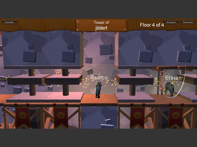In Tower Master you race your opponents to the top of a boobytrapped tower with the goal of saving the princess. The catch is that each floor is designed by one of the players. Before starting a game