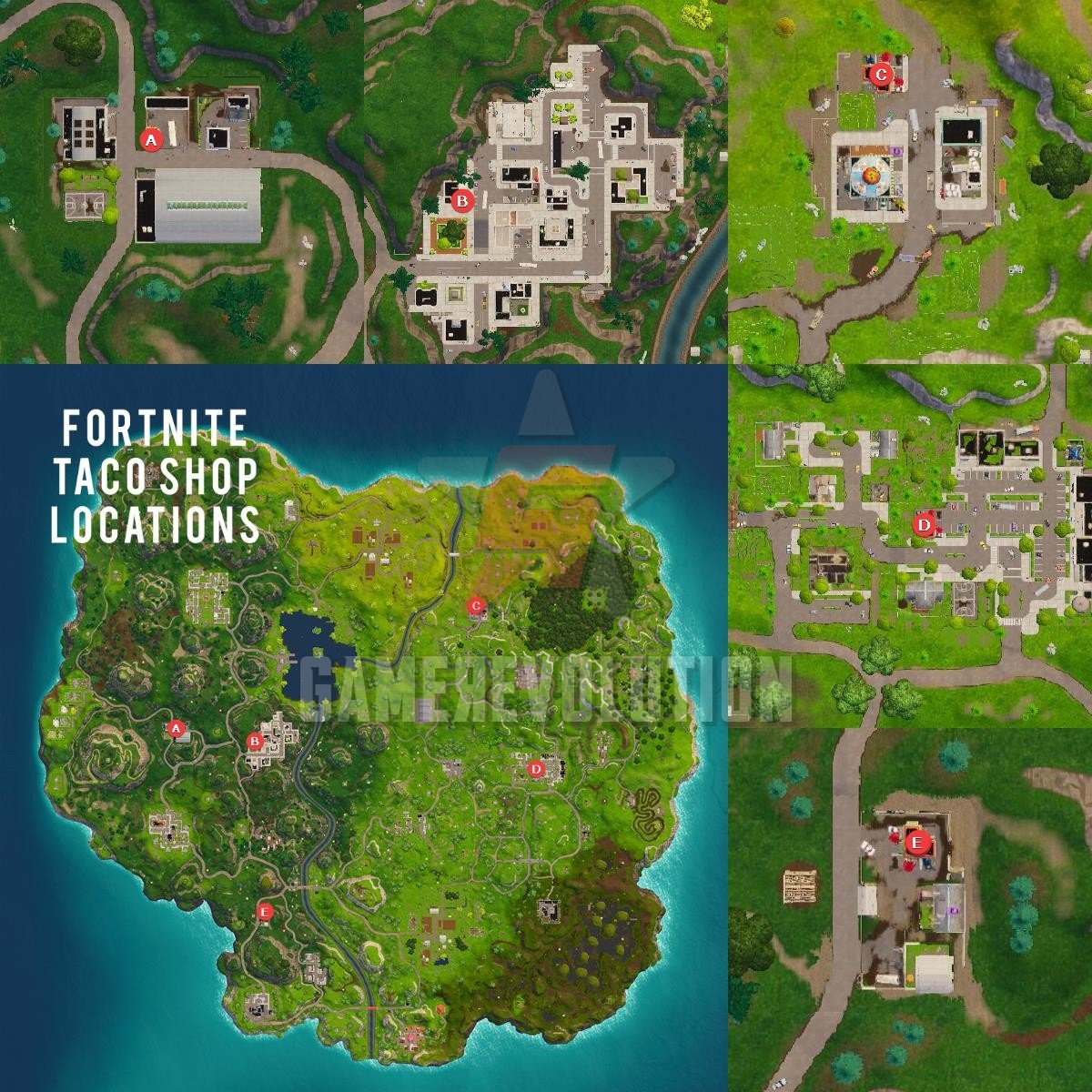 The Fortnite taco shop locations are quite far apart from each other, meaning players will need to move quickly in order to complete this challenge in a single match. Using the map below (click for larger image) should speed up the process considerably.