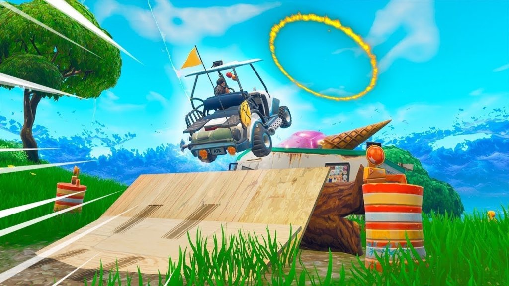 Well, here we are, folks time to jump through a ring of fire in Fortnite. Another week means another batch of weekly challenges. As any consistent player of Fortnite should know, each new season comes with a set of new challenges to tackle every week. Completing each challenge earns you some Battle Stars. The more Battle Stars you pick up, the higher your Battle Pass tier level goes. Finishing all seven of the Fortnite Week 4 Challenges will net you a staggering 5,000 XP, a hidden loading screen, and a secret Battle Star. One of these seven challenges asks you to jump through flaming hoops with a shopping cart or ATK. Where are the Fortnite fire rings? How do we jump through them? All, and more, is revealed below.