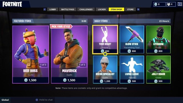 - True Heart (Emote): 800 V-Bucks, Epic.