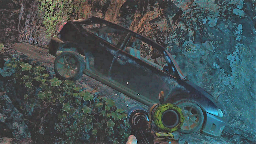 Once you use the car to jump over to the other side, you’ll enter a wide cavern. Here you’ll find the typical treasure hunt fare. There’s three perk magazines, miscellaneous crafting supplies, and 45 Far Cry Credits.