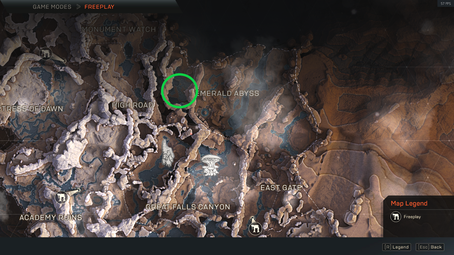 The War Titan is where things get a bit tricky. It has a similar setup to the other three named Titans, but the location can be wildly different. Many players have reported this particular Titan to be directly on the words “Monument Watch” in that region, but other players, including our mapmaker, found the War Titan somewhere between Emerald Abyss, High Road, and Monument Watch. If you don’t find it in one, fly to the other, and hopefully it’ll show up somewhere along the way.