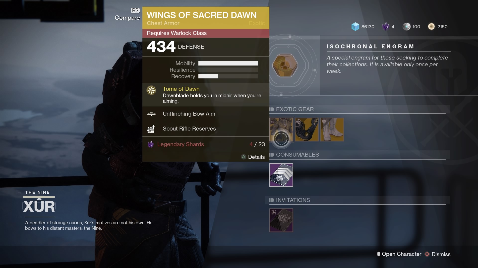 - Chest Armor (Warlock): Wing of Sacred Dawn(23 Legendary Shards)