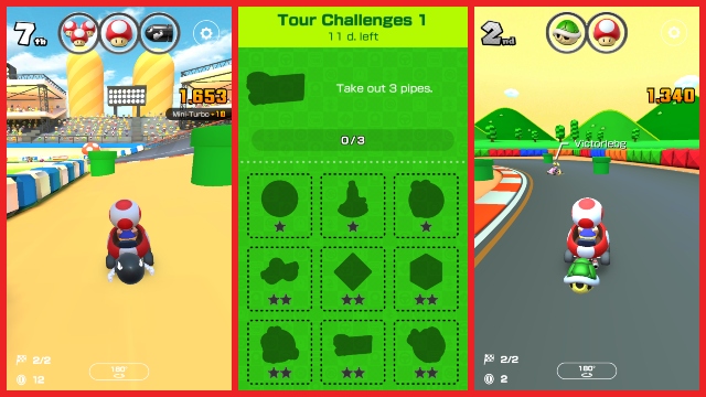 As mentioned, the challenge-related pipes have nothing to do with the capital-p Pipe that doles out Mario Kart Tour’s randomized rewards. The challenge is instead referring to the other pipes in the game — the stout, green ones you have to weave through on the roads of various Mario Kart Tour tracks.