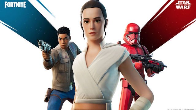 Players assembled at Risky Reels in-game for a look at the latest Fortnite crossover event, getting treated to a show featuring the Millenium Falcon and an exclusive clip from the upcoming movie where Rey uses a Jedi mind trick to bypass some Stormtroopers. Perhaps the main event, though, was the addition of lightsaber weapons and a variety of character skins like Finn and Rey.