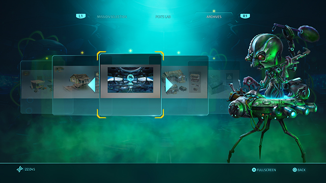 The side missions in the original are painstakingly basic. Collect four brain stems. Kill some farmers. Boring. The remake now has four sets of side missions in each world: Armageddon, Race, Abduction, or Rampage. They task you with wrecking things in your ship, racing a drone, tossing specific things in a huge abduction ray, and destroy certain people or objects as Crypto, respectively. They have tiered rewards and dole out more DNA for each star ranking you achieve. Getting three stars in every one of these missions nets you the Mandatory Option trophy, which you can read more about in our trophy guide.