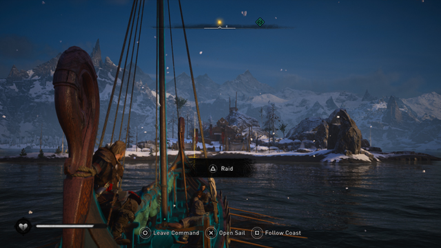 To raid in the longship, Eivor will obviously need to jump in the longship. The longship can be found at the Ravensthorpe settlement or can be summoned by holding down on the D-pad and using the bottom left option to summon the ship.