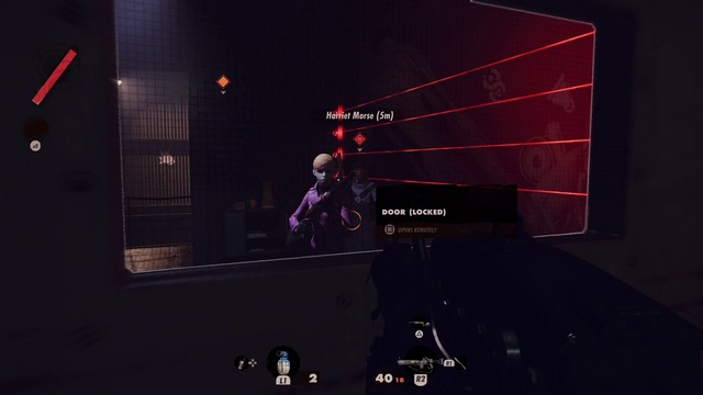 Harriet is sealed behind an aircraft fuselage mounted to the rear wall, but her office is wide open. Well, except for the tripwire mines slapped over the window. However, players can take these out with a well-thrown grenade. Now, ideally, the grenade will trigger Harriet’s alert phase. Players can then post up behind the box opposite her office window and wait for her to come to them. She’ll attack either from her office window or through the door on the catwalk on the opposite side. Get ready for her and attack as soon as she appears.