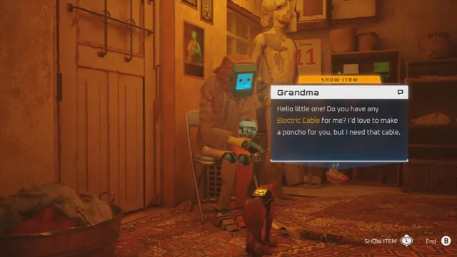 Get the poncho from Grandma, then return back to Elliot. Even though he specifies a blanket, he’ll be just as happy with the poncho, and from there he’ll be able to get the Tracker working. You know they say — a warm robot is a happy one. (No one says that, but in this case, it’s the truth.)
