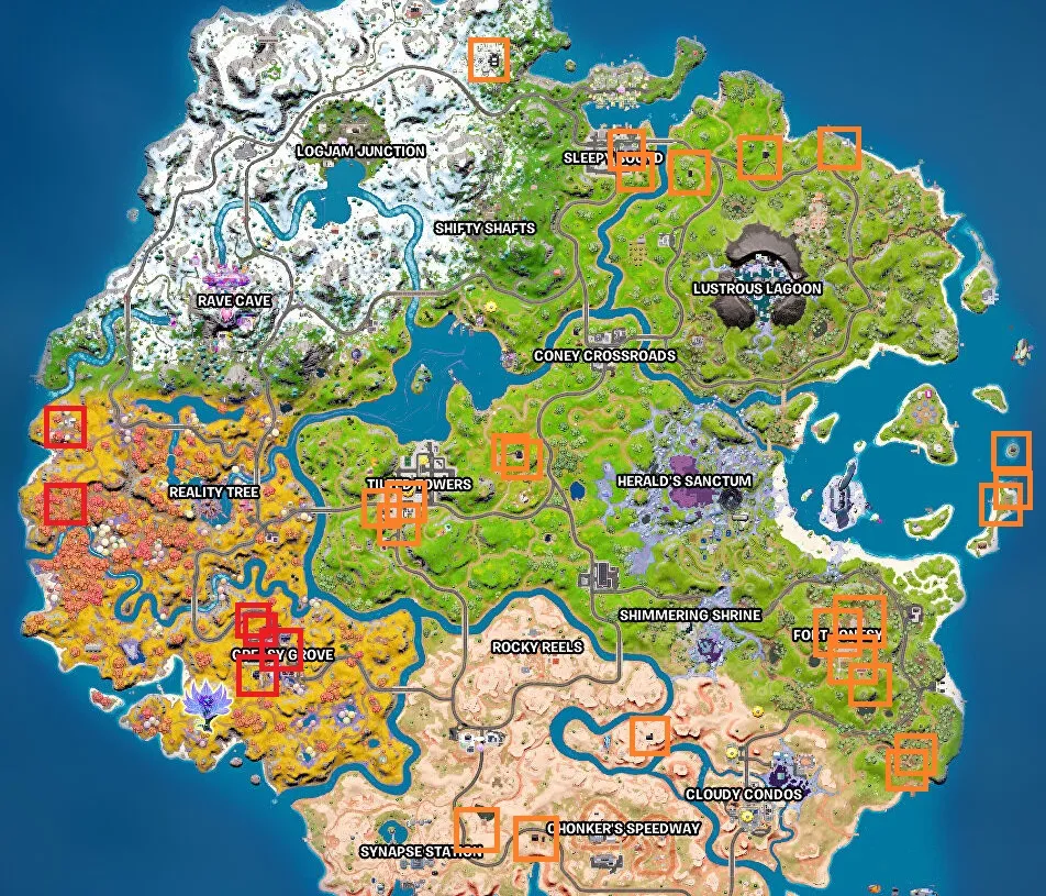 That said, looking at the map, there are plenty of pumpkin locations in other areas as well. In particular, there are several islands to the east with jack o’ lanterns near houses. There is also a couple of them to the west of the Reality Tree and around Chonker’s Speedway. It will likely be a good idea to get some of the pumpkins in these locations instead, as fewer players will be on the lookout for them.