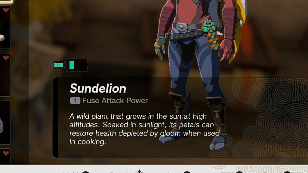 Instead, Lasli is saying that any wild green can be used to make porridge in Zelda: Tears of the Kingdom. It’s also a clue pointing you to the gloom-resistant ingredient you need to use to complete the quest. A few plants are described as “wild,” but only one restores health depleted by gloom when used in cooking: Sundelion. If you don’t have any, you can find it throughout the sky islands, where it grows commonly.