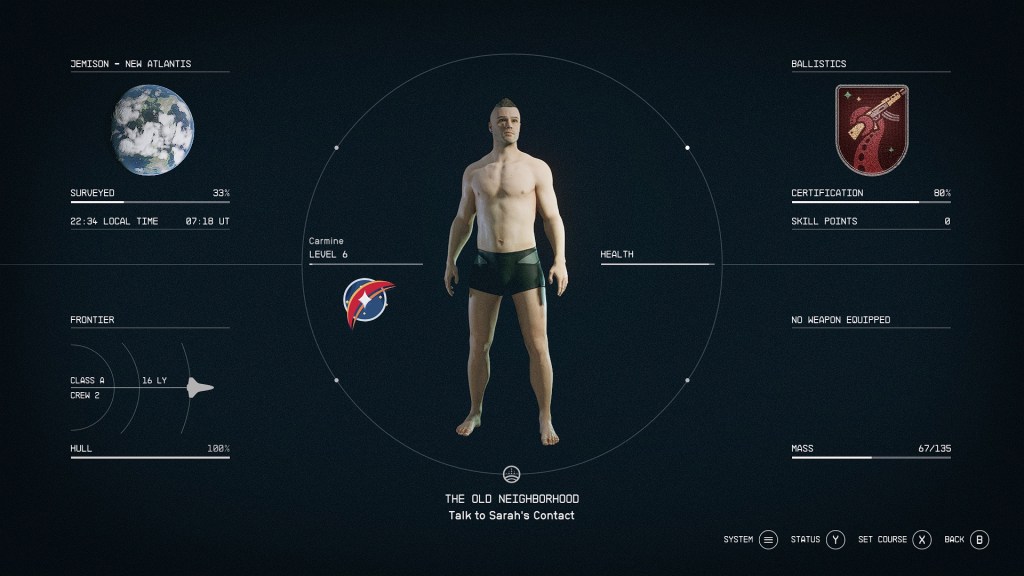 If you decide to unequip your character’s spacesuit, boost pack, helmet, and apparel, the character will still have underwear on. Running around New Atlantis with just your undies won’t get a reaction from any of the citizens. There are no options to change the size of a female’s breasts or a male’s genitals in character creation.