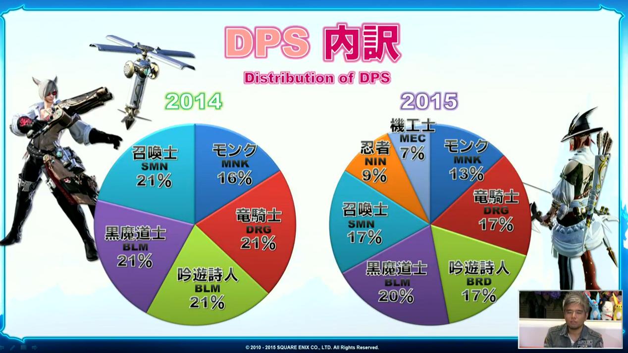 As seen in the presentation images below, White Mage and Black Mage tie for the most overplayed jobs in the game, closely followed by Paladin, Dragoon, and Bard. Of the three new Heavensward jobs, Astrologian is the least popular. It is said to be receiving significant adjustments and buffs in both the 3.07 and 3.1 updates.