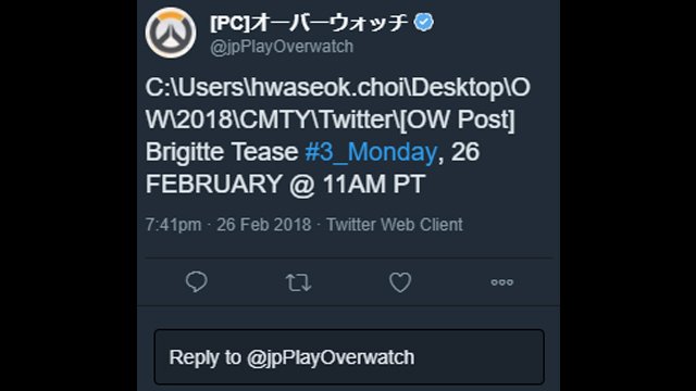 Attaching images to a tweet can be difficult. Sometimes the image is too large, either in resolution or in actual memory size. At other times, you can select the wrong image format, and Twitter just “nopes” out of it, leaving you rejected. And finally, there’s the weird instances where you’ll accidentally copy the file location and paste that, instead of the actual image… Yeah, I’ve never actually done that, but it’s a thing, as proven by the social media gurus manning the Japanese Overwatch Twitter account.