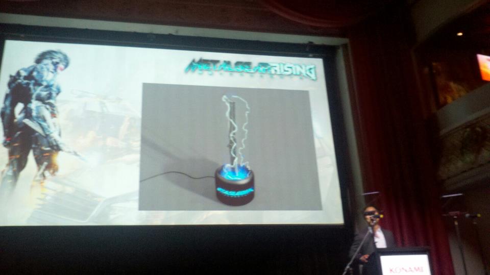 I'm sure you've entered those geeky science stores before and touched one of those electric lightning bolt lamps. So just to make them even more geeky, the Collector's Edition for Metal Gear Rising Revengeance will come with one that has Raiden's sword straight down the center. It's the kind of prop I imagine many cats will enjoy by knocking it over.