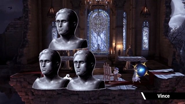 - From the Art Academy series, Vince summons giant statue heads and tomatoes in with the help of a handy easel. Quite a distraction during a hectic fight.