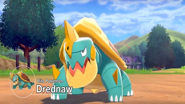 Drednaw is known as a bite Pokemon and looks like a more vicious version of the Pokemon Gold and Silver evolutions of Totodile. Its skin color and design hint at Drednaw being a Water-type, though it could also be a Ground or Dragon type too. Its jaw is said to be able to crush rock and iron. Its personality means that it’s hard to tame, and even the most experienced of trainers may have troubles reining its temperamental side.