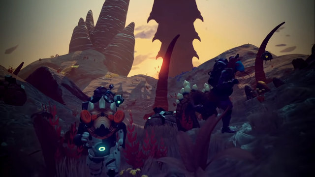 The earliest trailers showed a giant snakelike creature slithering around on the surface of a planet, but those were never actually put into the game. They did exist at one point during development according to Sean Murray. Unfortunately, the sandworms didn’t work out too well in actual gameplay.