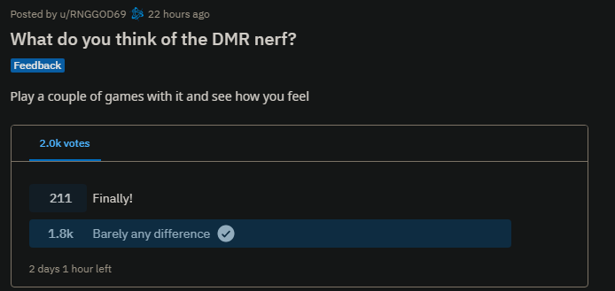 YouTube creator JGOD said that, though there is a difference, the DMR has gone from “unbelievably broken to a little overpowered.”