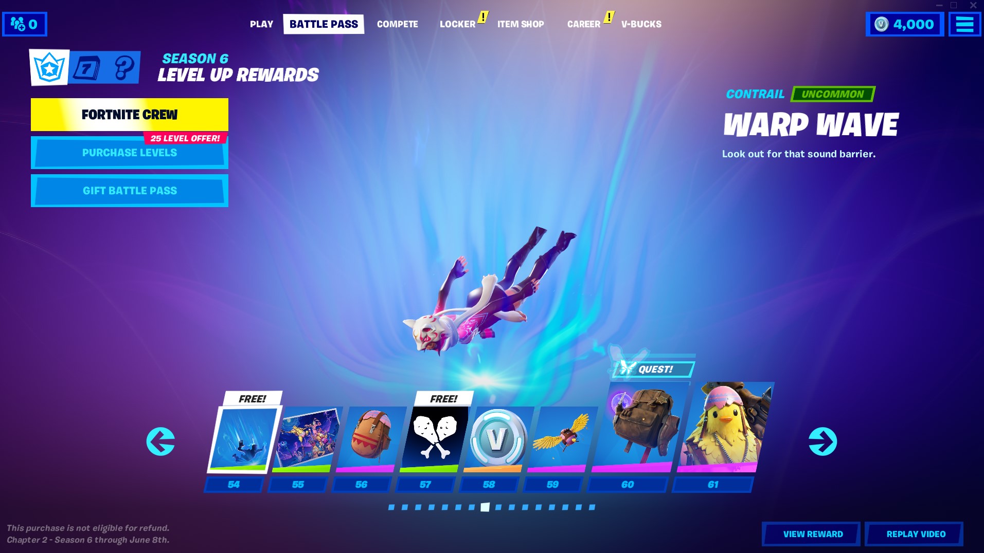 Continue on with the Season 6 Battle Pass to get the Warp Wave and the Easter-themed Cluck skin.