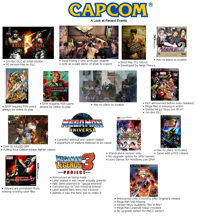 Some have reacted by creating blogs to save the project like Operation Mega Man, while others have reacted by making a collage of all the questionable transgressions that Capcom has committed over the last year or so (click image to enlarge):