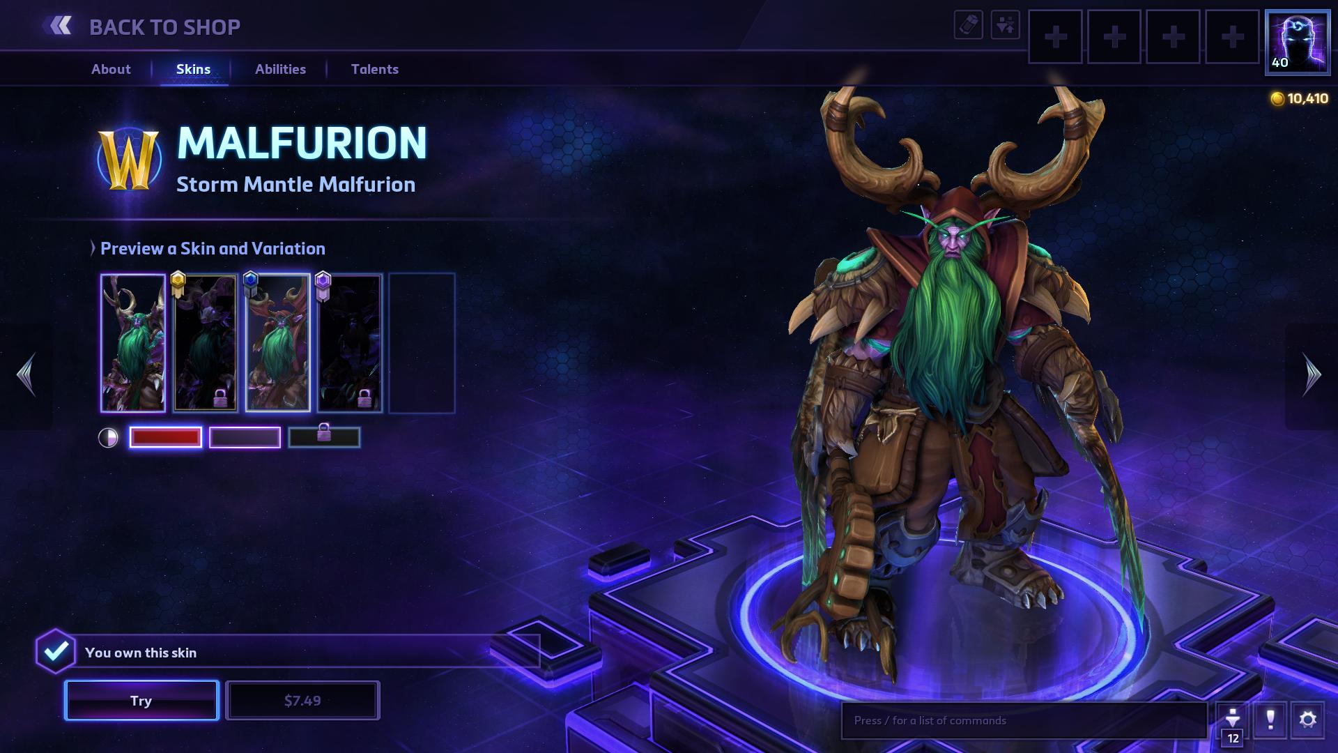 Malfurion was the first Night Elf Druid in Warcraft lore. He is a major character in the IP as well as a fan favorite for his unmistakable visual design and powerful capabilities. In Heroes of the Storm he serves as a potent support hero that is capable of rejuvenating teammates, trapping enemies, and dealing moderate damage. Below is how his Storm Mantle skin looks in its three colorways.