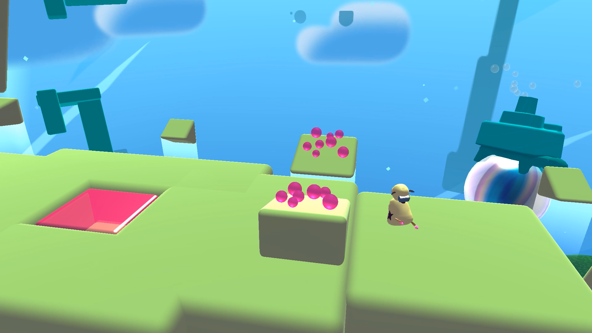 At the Oculus Rift launch preview event, but in a completely different world, I stood on a green platform floating in space, next to what appeared to be a spacesuit helmet, and a green-glass cat nearby with balloons sticking out of it and formed in the shape of a wooden beam and a broad wheel. I knew, from previous levels, that attaching a beam to the wheel would make it roll forward perpetually, and I could grab as many balloons as I wanted; the cat would always have more.