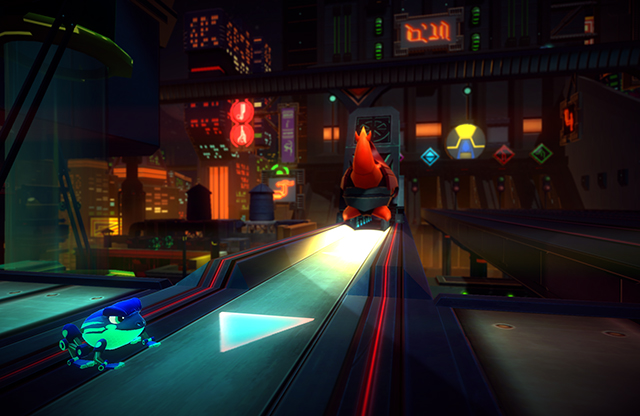 The Good Mood Creators are petitioning gamers’ nostalgia for old 16-bit platformers, ones featuring animals and mascots and the like. With Mekazoo, their first commercial release, they may get a lot of return. What’s immediately apparent upon starting the demo for this game is the visual style—the imagery is cool and smooth, and the colors are mostly dark complemented with fluorescent detailing. It’s something of an electric wonderland and stood apart from many of the realism-focused graphics on display at GDC.