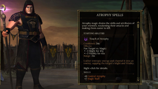 - Touch of Atrophy – Gather entropic energy and channel it into an enemy, sapping the target's Might and Vitality.