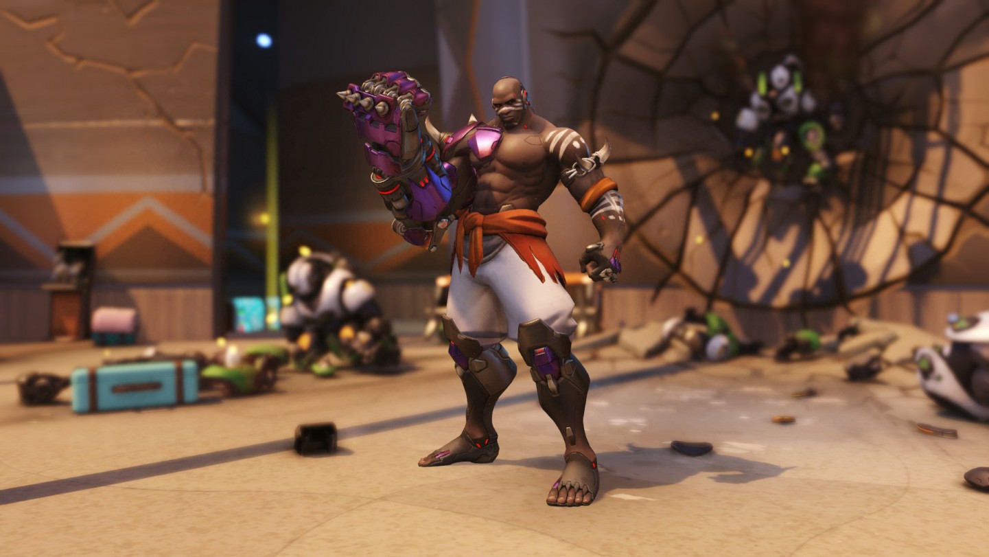 It’s real hard to take Doomfist seriously while he’s wearing this stuff, complete with a frilly hat and drape fit for a purple Santa Claus, but that doesn’t mean I wouldn’t buy 100 loot boxes just for the chance to get my hands on it.