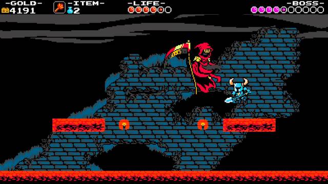 Perhaps Shovel Knight‘s most disappointing aspect is that it doesn’t conclude with a harrowing life or death battle. The Enchantress and her true form, Remnant of Fate, hardly instill a frightening impression. The former is more challenging than the latter, as Enchantress destroys the stage haphazardly and sets entire sections ablaze. Remnant of Fate, on the other hand, can easily be toppled with the Propeller Dagger. The fact that Shovel Knight and Shield Knight finally team up makes this battle memorable. Otherwise, Remnant of Fate does little to convince fans of its ruinous power.