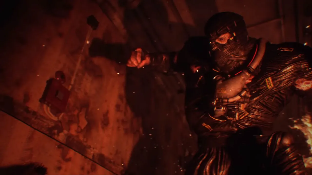 In the trailer, we can see Nemmy wearing a little gimp mask in addition to his iconic trench coat. Also, of note, we can now clearly see that Nemesis wears a protective covering around his massive heart. In fact, that heart looks so big, that Nemesis might actually be based on the T-002 Tyrant series as opposed to the T-103 series that Mr. X is a part of. It’d be interesting if it’s revealed that Umbrella somehow salvaged T-001 or T-002 after the Arklay incident and created Nemesis by introducing the NE-a parasite to revitalize the corpse.