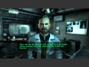 At about 20 years old, you discover that your father has either been taken from or escaped Vault 101. To solve the riddle of his mysterious disappearance, you must violate the most basic of vault rules set by the Overseer, open the bolted vault door and become the second person ever to exit Vault 101. Now the true game begins.