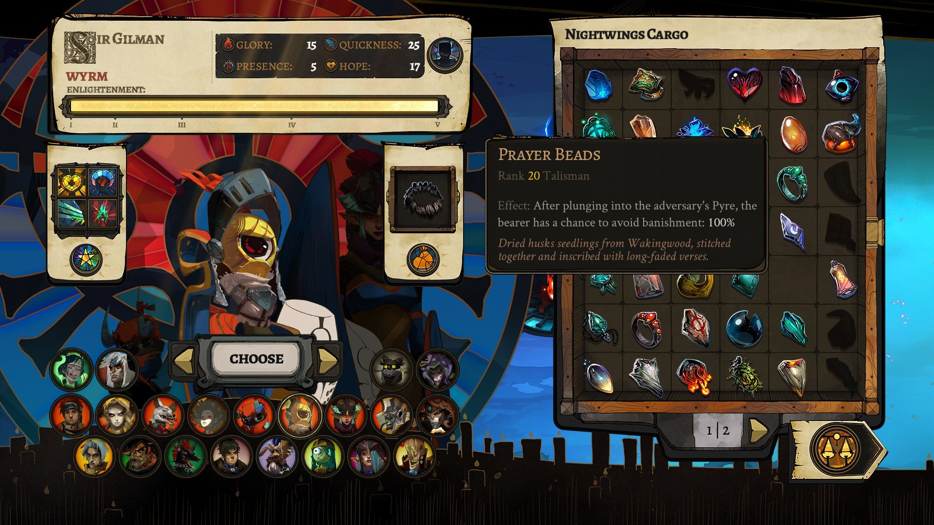 This isn’t even counting the unique skill-tree system, which includes eight unique abilities for each of nine different characters who can only ever learn four of those abilities, and 46 items (called Talismans) to level up and assign to these characters as you see fit. It’s a surprisingly in-depth and strategic system, so much so that it required a 2,000+ word guide.