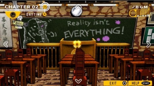 Rather than follow the Ace Attorney model to the letter, Danganronpa expands on the format with a series of timed mini-games. In the most prominent one, you listen to classmate arguments with your evidence loaded as bullets, which you use to literally shoot down their inconsistencies by shooting the dynamic subtitles. Other games include a dynamic form of hangman and a rhythm game where you have to burst through an opponent's delusions. The final game is a mix-and-match comic book, where you reconstruct the crime with all the clues and information revealed in the trial to lay out the case before the court.