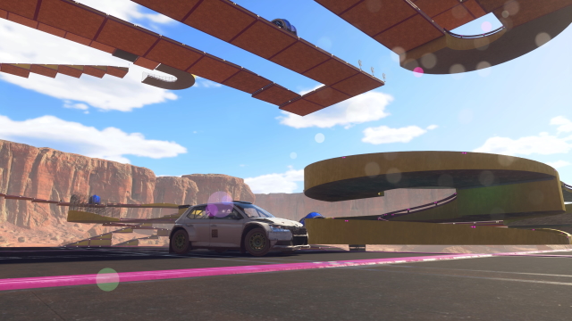 Outside of its Career Mode, Dirt 5 introduces Playgrounds. This track creator mode is lifted right out of Trackmania, and that’s no bad thing. Playgrounds lets you create, share, and play tracks made by the Dirt 5 community. Three Playgrounds tracks can be made: Gate Crasher, Gymkhana, and Smash Attack. For each style, there’s an in-depth creator tool, which can lead to some impressive and inventive races and challenges. Throughout my time with Playgrounds, I jumped over buses, careened through a variant of Rainbow Road, and more.