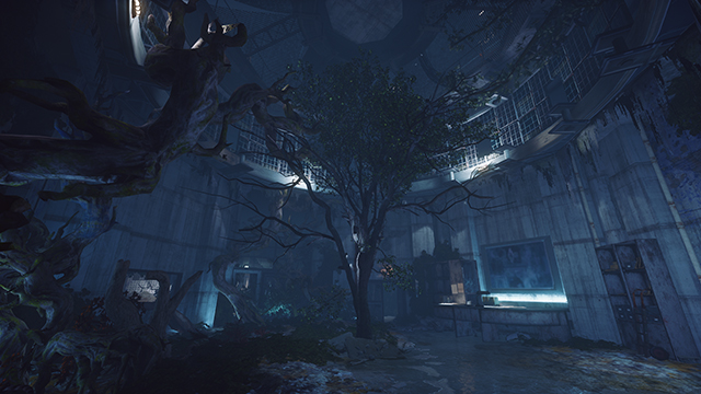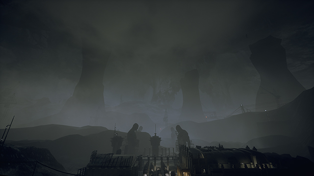 However, Paradise Lost is able to completely lean on its story because it is elegantly told and presented. The dour depths of the vault are wonderfully rendered, striking a good balance of awe-striking scale from the exteriors and detailed interiors. This grand bunker is reminiscent of Bioshock’s Rapture as it is a completely unrealistic feat of engineering yet uses those fictional elements to truly inspire a palpable sense of wonder. Giant statues peer over the buildings. Sweeping vistas show the huge draw distance as well as how far deep underground the whole structure is.