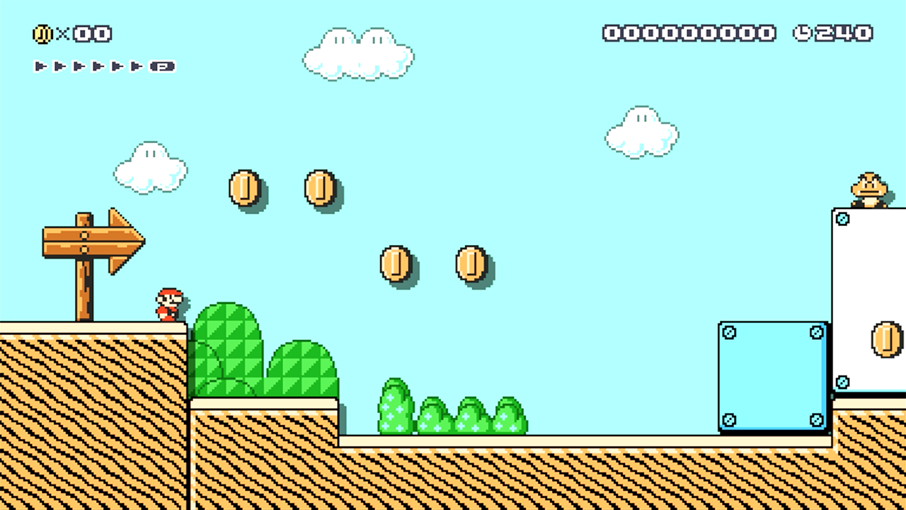 Although items and enemies play an important role in the course creation process, the actual layout also stands out as a key element. I stuck to the Super Mario Bros. theme for most of my time with the course creator, but the game allows players to also make levels with a Super Mario Bros. 3, Super Mario World, or New Super Mario Bros. U motif. The visual variety fosters even more creativity, as the approach to a Super Mario Bros. 3 level may be completely different to one with a Super Mario World theme.